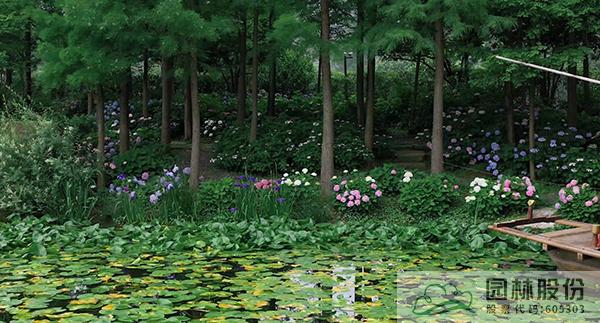 彰顯著水杉繡球林的濱水魅力。