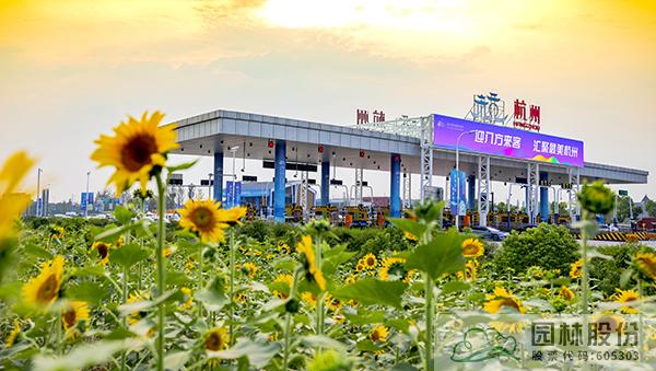項目采用江南園林自然式組團配置造園手法,通過豎向堆土形成立體空間,以銀杏、黃山欒樹等鄉(xiāng)土樹種為背景基調(diào),丹桂、紫薇及球類構(gòu)成前景,針形、卵形、帚型植物之間相互襯托。結(jié)合杭州亞運特色,以立體綠雕塑、亞運吉祥物、時花布置、道旗裝飾、收費站門樓及收費亭、公安檢查站、花箱等多種展現(xiàn)形式,呈現(xiàn)“綠色亞運理念”,展現(xiàn)共贏金銀銅牌,共享綠色盛會,共賞錢江潮涌。